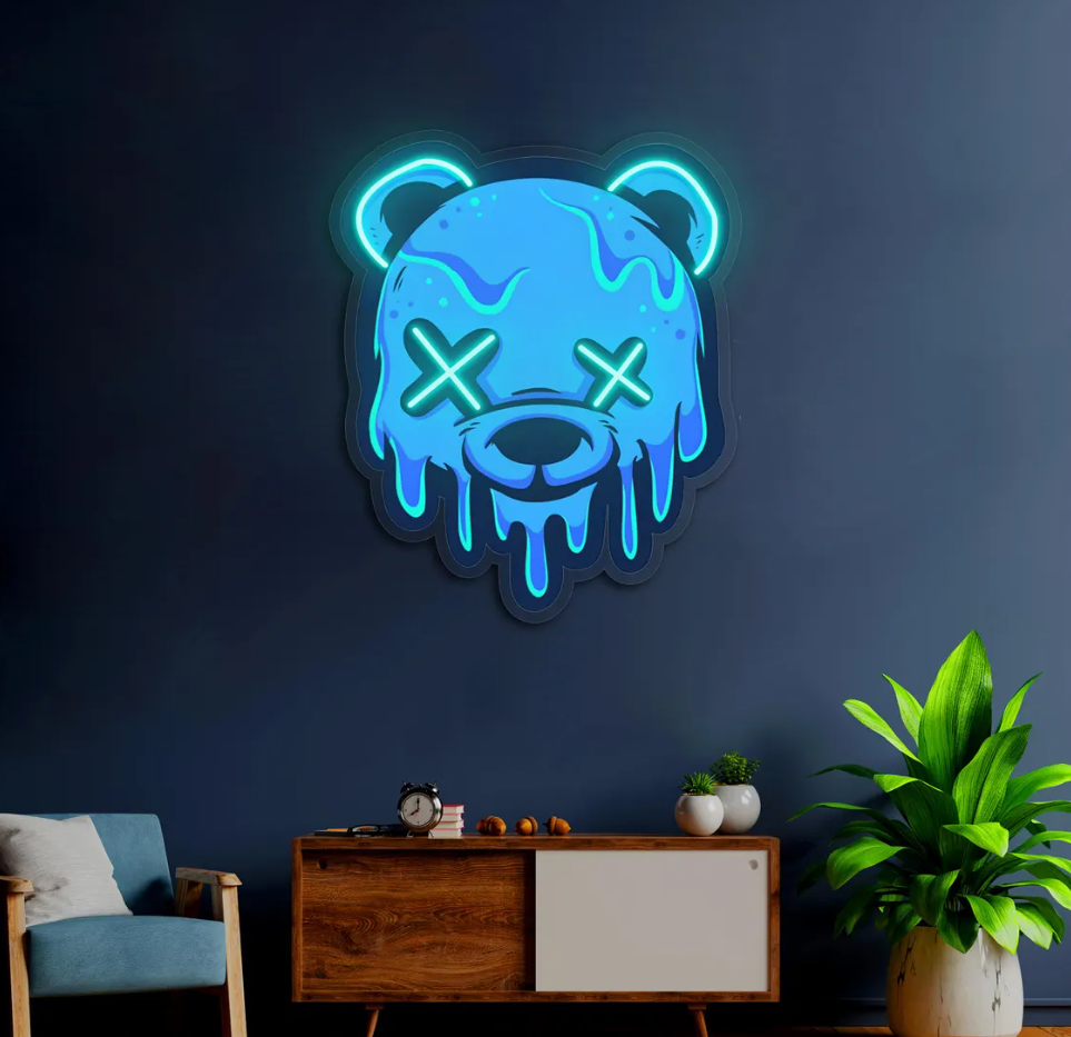 UV Printed Bear Neon Sign, Neon Wall Art,Neon Light Sign,Custom Neon Sign,UV Print Neon Sign,Acrylic Neon Sign