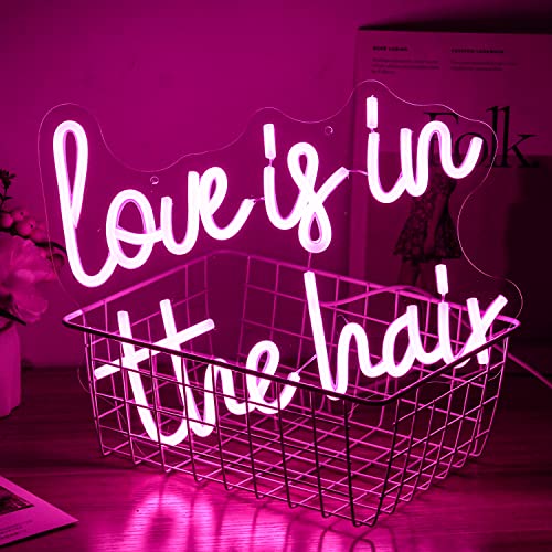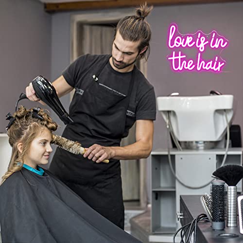 Love is in the Hair” Neon Sign Dimmable Pink Letter Neon Signs Salon Hair Salon Sign Word LED Neon Light Sign for Barbers, Beauty Salons Decor for Beauty Shop
