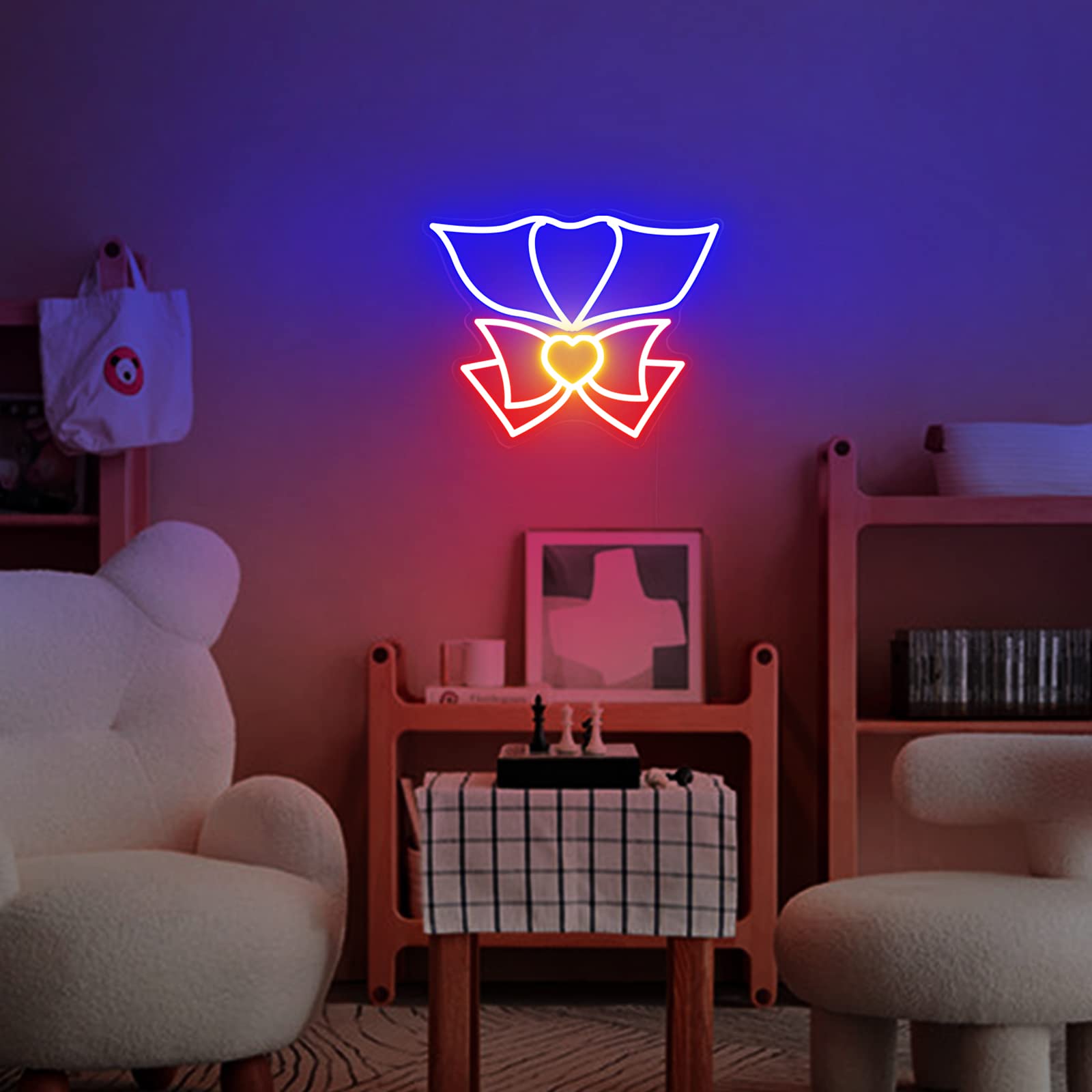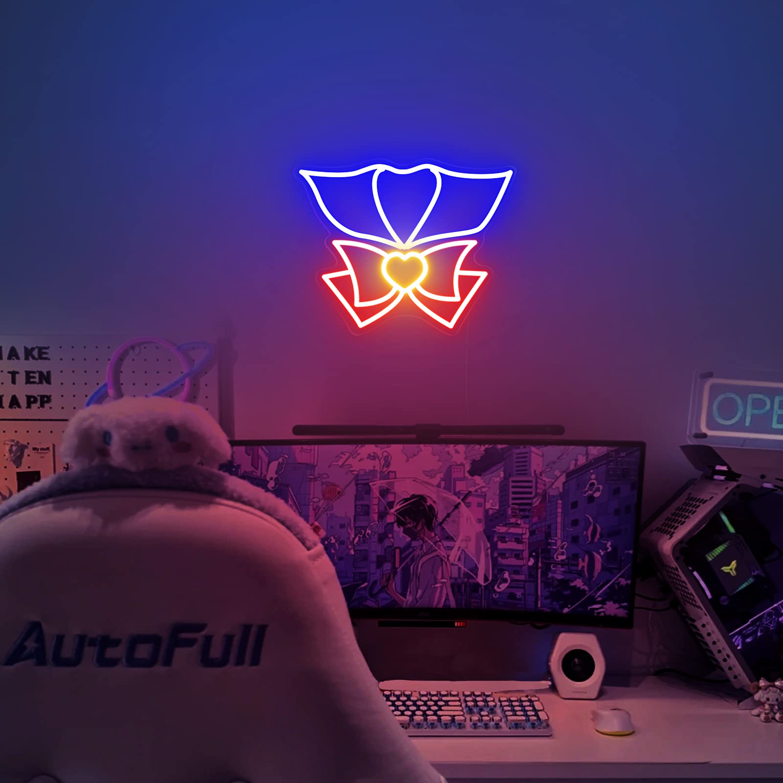 - ???Anime Decor Signs?Use this cute neon sign in your room to create a unique anime atmosphere and make a wonderful addition. It's a really nice mood light and it definitely adds flavor to an otherwise plain room. This led sign can also be used to decorate many scenes, such as kids room, dorms, living room, game rooms, man cave, anime theme shops and so on.