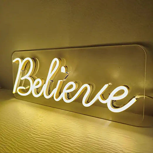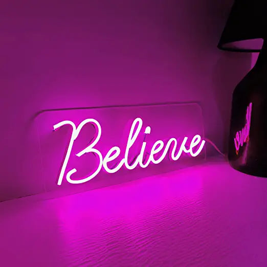 - Believe neon sign: Neoon Art neon lights present a cool and comfortable feeling. Turning on the big night neon lights to highlight the dynamic lights will be the highest point of your restaurant, bar, party, activity, bedroom, salon, beauty parlour.