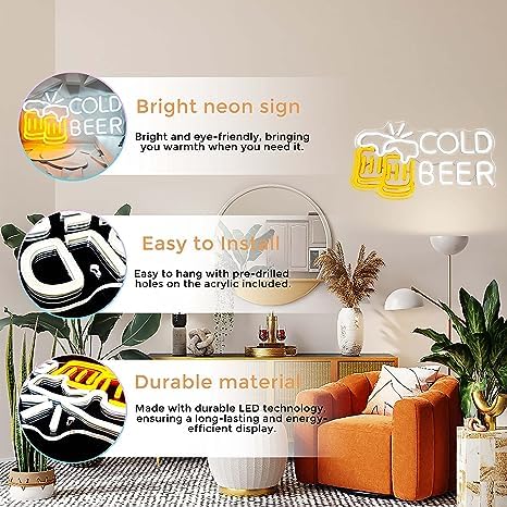 - ? Sophisticated Technology : The neon light is made of flexible silicon LED strip lights and thickened acrylic backplate, compared with traditional glass neon lights, it is softer, brighter, safer, durable.