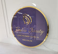 Premium round/cut-to-shape acrylic sign board with LED backlight and eye-catching design.
