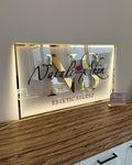 Showcase your brand with elegance using our Custom LED Acrylic Sign Board, designed to elevate any business space with a sleek, modern look. Made from premium solid acrylic, this glowing signboard adds sophistication and visibility to your shop, studio, or workspace.