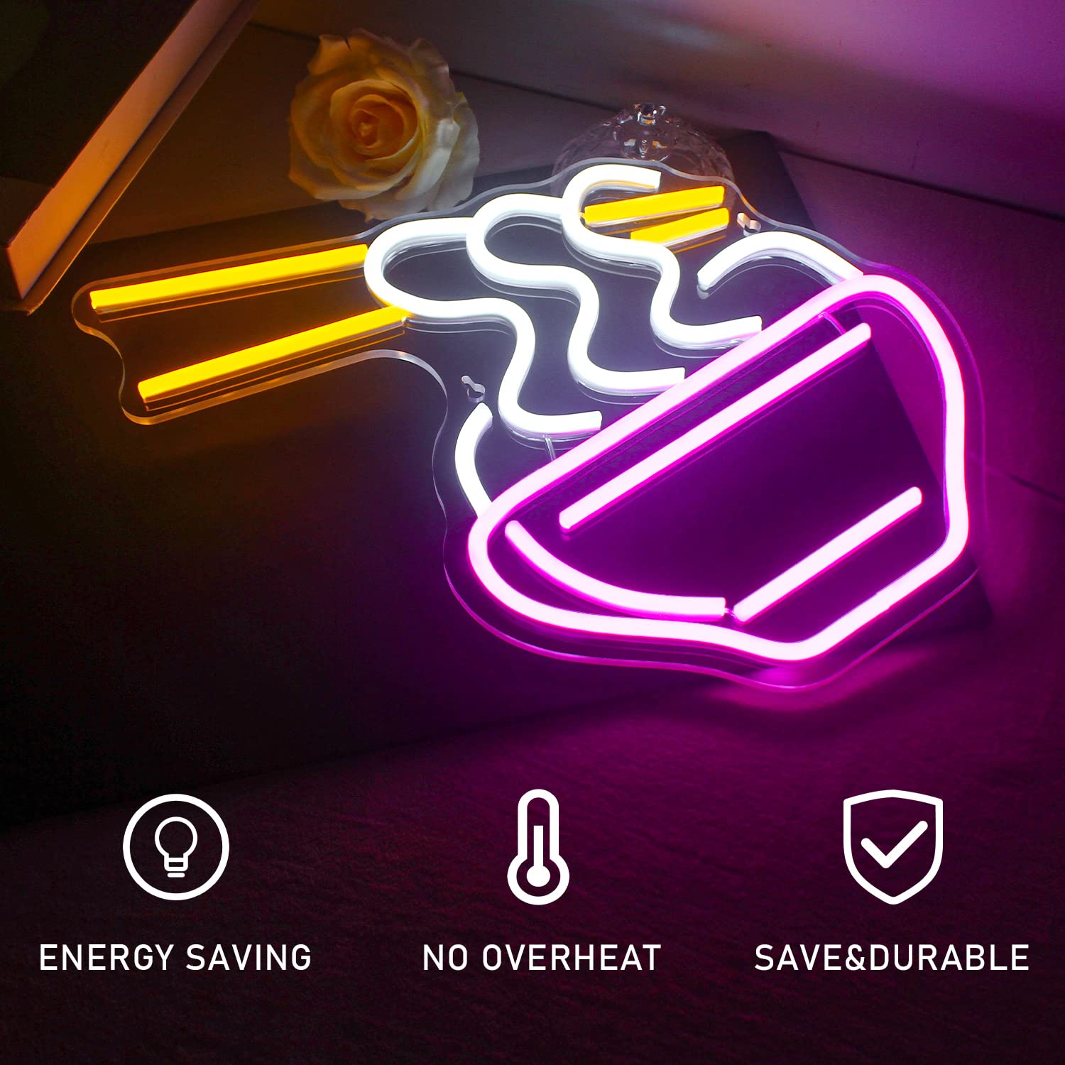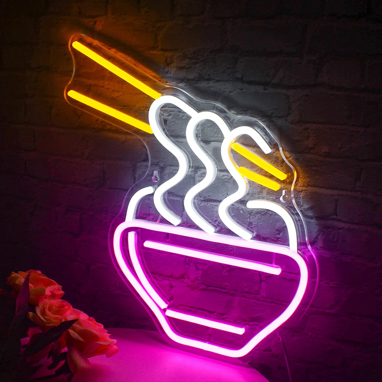 - ??RAMEN DECOR: For a restaurant/ramen shop, this neon sign would be a good choice for decoration. Cute shapes and bright colors give your store a warm atmosphere.