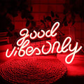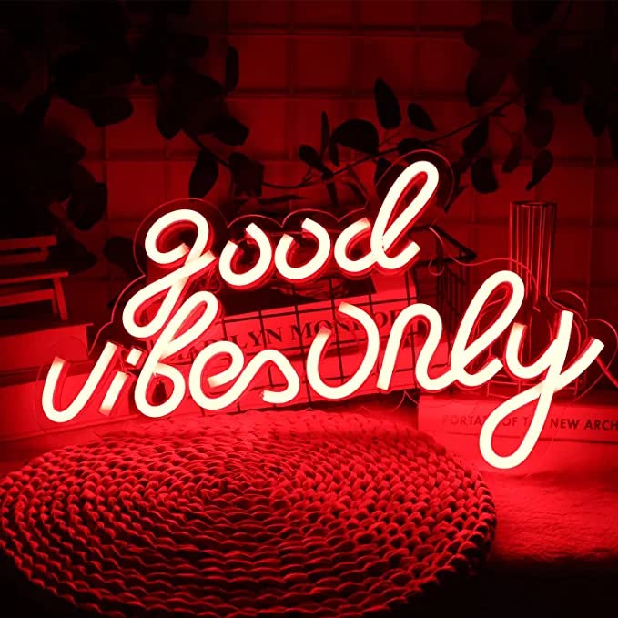 Details: PACKAGE INCLUDES : 1 LED Neon light Optional Ways To Be Placed There is a hole behind the lamp, you can hang it on the wall. Cordless light up, fast and easy to install. BEST FOR : Great choice for indoor romantic party decor, serve as Valentine's day table light and gifts like Birthday gift, anniversary and party gifts for lover, girls, friends, or colleagues. IDEAL FOR : decoration items for home decor, room decorations items for bedroom, bedroom decoration items, neon light, wall light. ?? Perfect Gift & Decoration ??: LED signs can decorate your personal style and create a unique atmosphere. Adding 'Good Vibes Only' neon lights signs can liven up any dull space and is an essential party decoration. It is also an ideal gift for weddings, birthdays, Valentine's Day, Christmas and other celebratory occasions, perfect for anyone who likes a fun and interesting atmosphere.