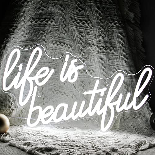 - Life is Beautiful Letter Artistic Neon Signs: The led sign can energize your mood with good vibes by glaming up or jazzing up your bedroom, living room, or your work place.