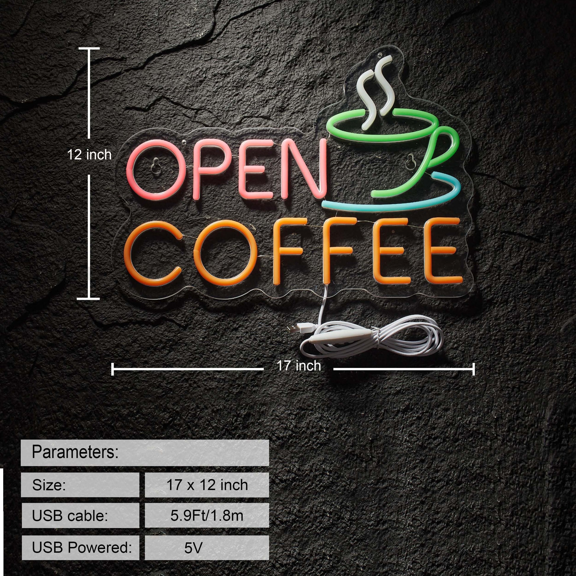 - Eye-Catching Design: This neon sign features the words 'OPEN' and 'COFFEE' in vibrant neon colors, creating an inviting and lively atmosphere.