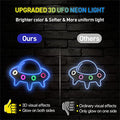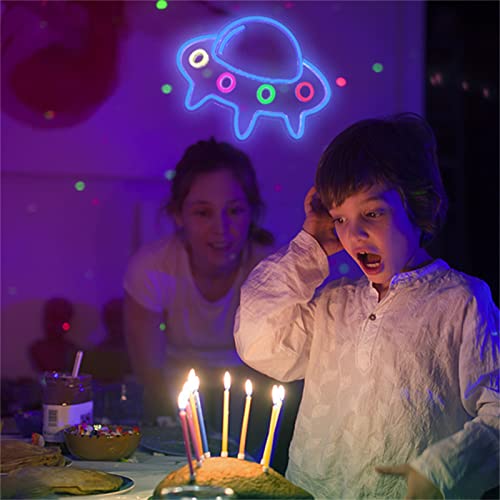 - ?? ?UFO Room Decor?: UFO neon sign's size is 15.7x12.6 inch. Astronaut neon lights is the perfect wall decor to have in your living room, especially if you a space lover, you can touch the universe! Having your own unique alien neon sign has never been so signsasy! This custom neon sign look best in the dark.