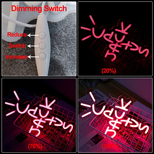 - Dimmable Light:Led dimmable Neon lights can be intelligently adjusted with six different brightness lights through the plus or minus buttons, and can be turned on again to return to the original brightness. High grade brightness lights are bright and dynamic, making them a unique decoration for your parties and weddings. Low brightness, soft light, clear lighting, is an alternative to room decoration and night lighting.
