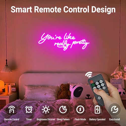Large You're Like Really Pretty Neon Sign, with Timing Dimmable Remote, 25-IN Pink Youre Like Really Pretty LED Neon Lights for Wall Decor, Bedroom Party Wedding Aesthetic Decoration, Girl Gifts