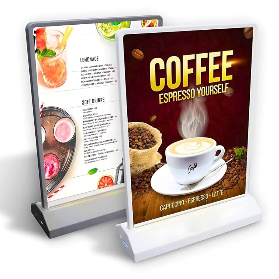 Showcase your menu, offers, or information in a stylish and eye-catching way with our LED Table Top Display. Designed for counters, reception areas, and tabletops, this compact illuminated frame ensures your content stands out even in low-light settings. Perfect for cafΓ©s, restaurants, salons, exhibitions, and retail counters. (Printing & designing charges extra)