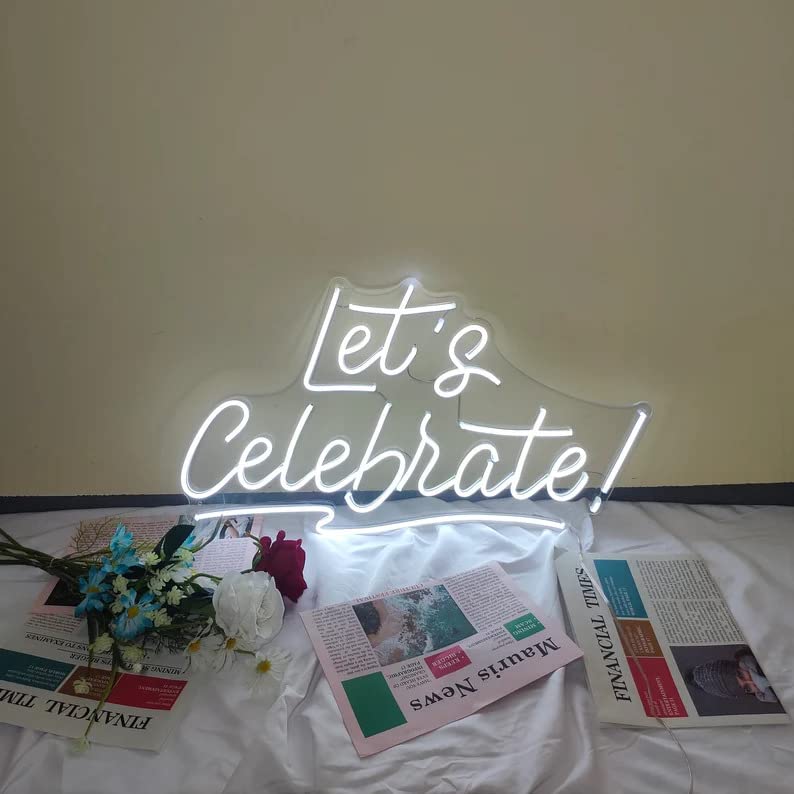 Let's Celebrate Neon Sign Light LED Neon Art Wall Decor Bedroom Light Wall Art Gifts Bar Pub Club Home Decor Neon Sign Wall Art Neon Sign Wedding Party Christmas Decorations (Cool White)