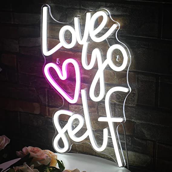- LOVE YOSELF NEON: We hope you love yourself and be proud of everything that you do, so we designed this neon sign. Simple white and pink lighting creates a calming yet powerful atmosphere, a wonderful encouragement and women empowerment gift.