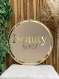 Upgrade your brand aesthetics with our Custom Transparent Acrylic Signboard, crafted with precision and luxury in mind. This premium signage features 3D golden embossed letters on a clear acrylic background, offering a modern and minimal look ideal for beauty salons, offices, boutiques, and creative studios.