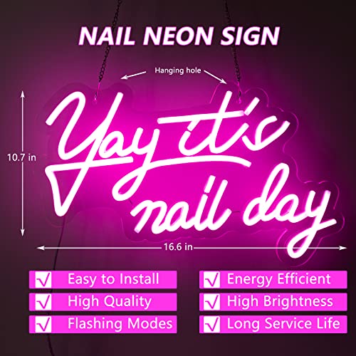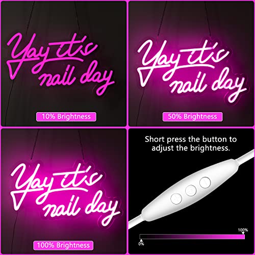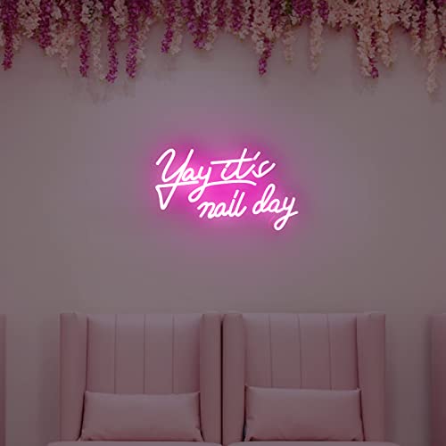 Yay It's Nail Day Neon Sign for Wall Decor, LED Neon Signs Lights Beauty Room Salon, Pink Salon Nail Tech Decor Neon Signs Aesthetic Light Door Decorations, Girls Neon Signs Accessories Gift