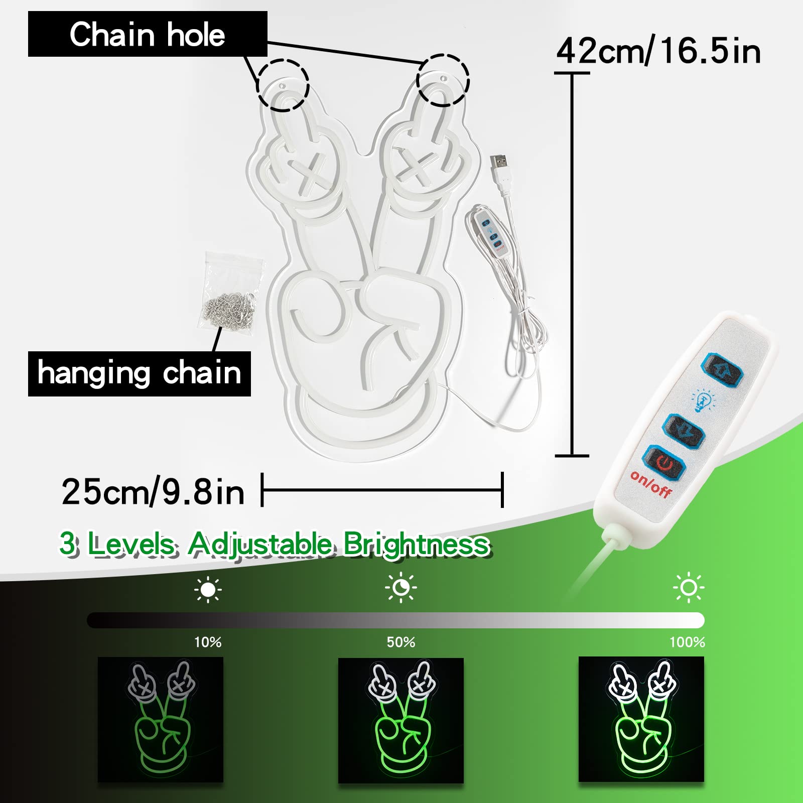 - victory gesture neon shaped lights has pre-drilled holes, crystal line and fixing screws. You can quickly hang it or fix it on the wall, or just place neon lights signs on anywhere flat.