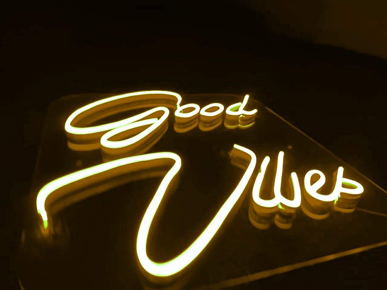 - An LED neon sign is the perfect way to show off your personal style anywhere. Add the 'Good Vibes' neon signs as the perfect decoration to liven up any dull space with the radiance of the neon lights. It also makes an ideal gift for Wedding, Birthday, Valentine's Day, Christmas and other celebration occasions