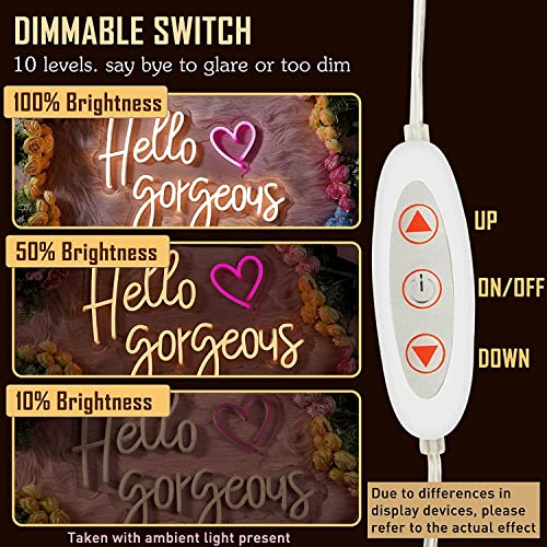Neoon Art "Hello Gorgeous" Neon Signs for Wall Decor, Led Neon Sign for Birthday Bar Signs Wall Room Decorations White Neon Light With Brightness Controller (Warm White)