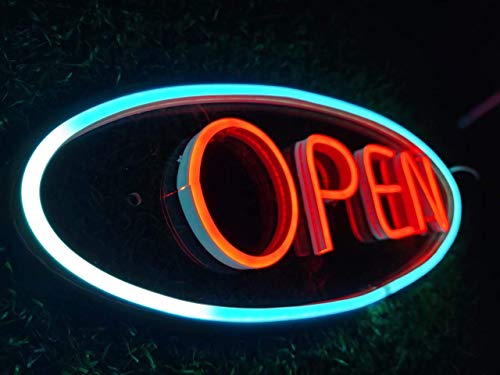 Details: Open LED Neon Sign 6x18 inches Feet with Adaptor and Brightness Controller PACKAGE INCLUDES : 1 LED Neon light COLOR : Ice Blue and Red SIZE : 6x18 inches Optional Ways To Be Placed There is a hole behind the lamp, you can hang it on the wall. Cordless light up, fast and easy to install. BEST FOR : Great choice for indoor romantic party decor, serve as Valentine's day table light and gifts like Birthday gift, anniversary and party gifts for lover, girls, friends, or colleagues.