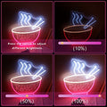 - 12V Shop Decoration - Ramen neon lights is the perfect wall decor to have in your shop window, especially if you a Asian food lover, Please enjoy the food! This chinese food neon signs for wall decor is 15.3x14.5 inch, 3 brightness with dimmer & switch. Having your own unique cool neon sign has never been so signsasy! The japanese neon sign look best in the dark. Especially in the dark, your shop sign will be very eye-catching, good for a extra lighting.