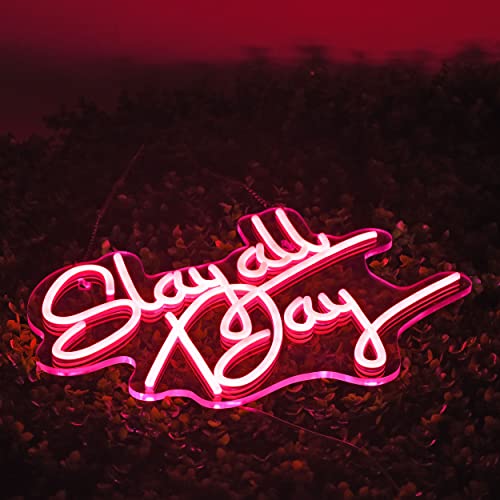 - Unique Design and Shape: slay all day sign are made by flexible silicon LED strip lights and fixed on an acrylic clear board.
