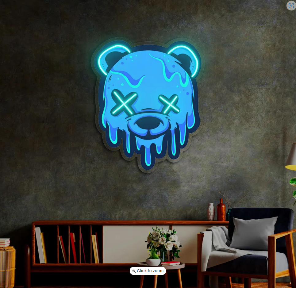 UV Printed Bear Neon Sign, Neon Wall Art,Neon Light Sign,Custom Neon Sign,UV Print Neon Sign,Acrylic Neon Sign