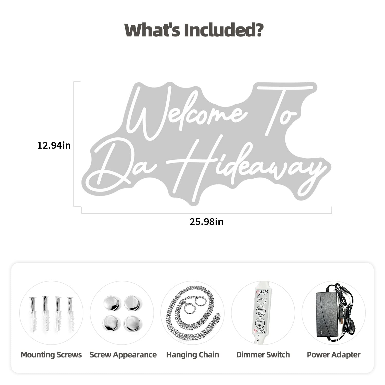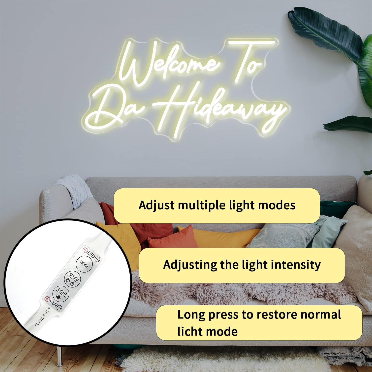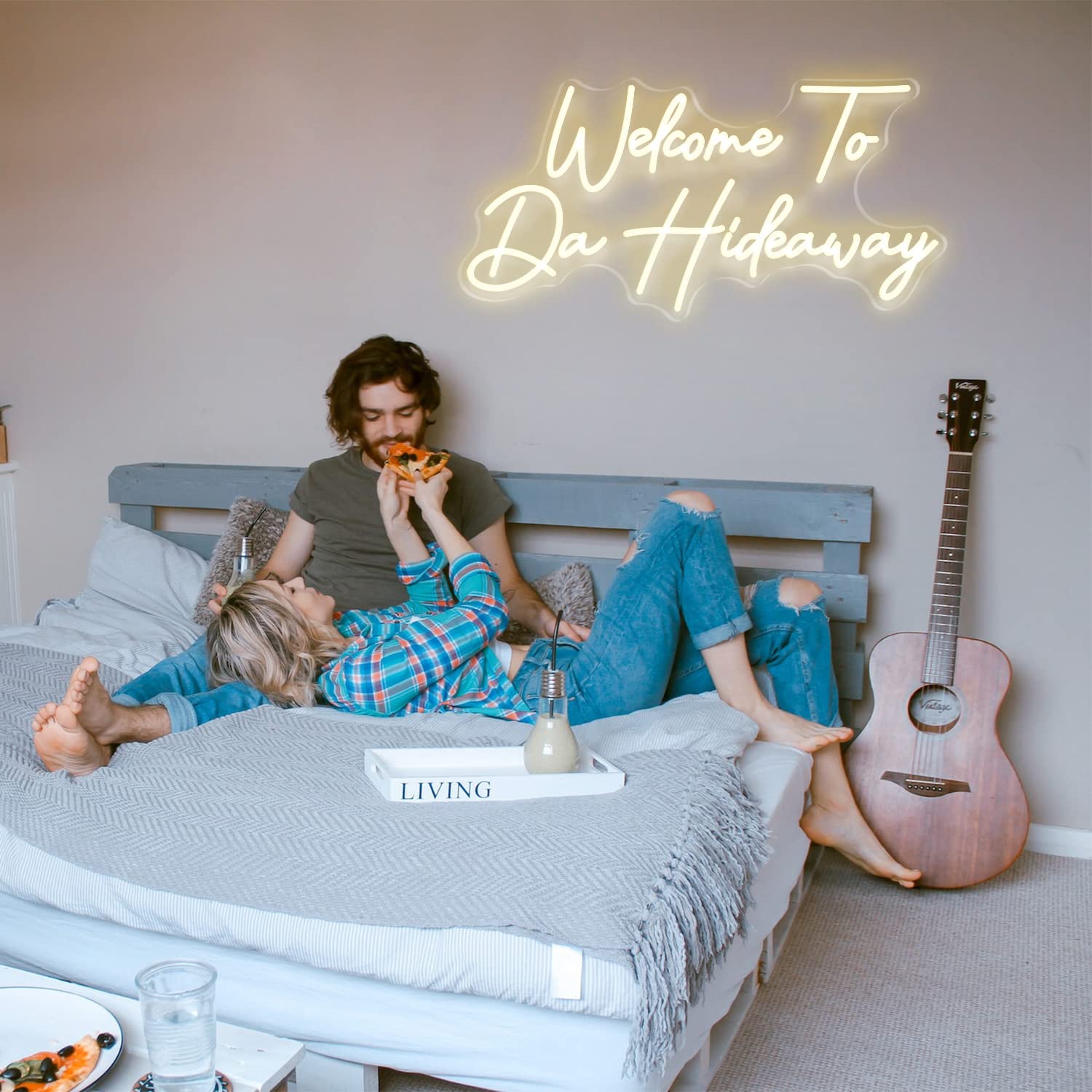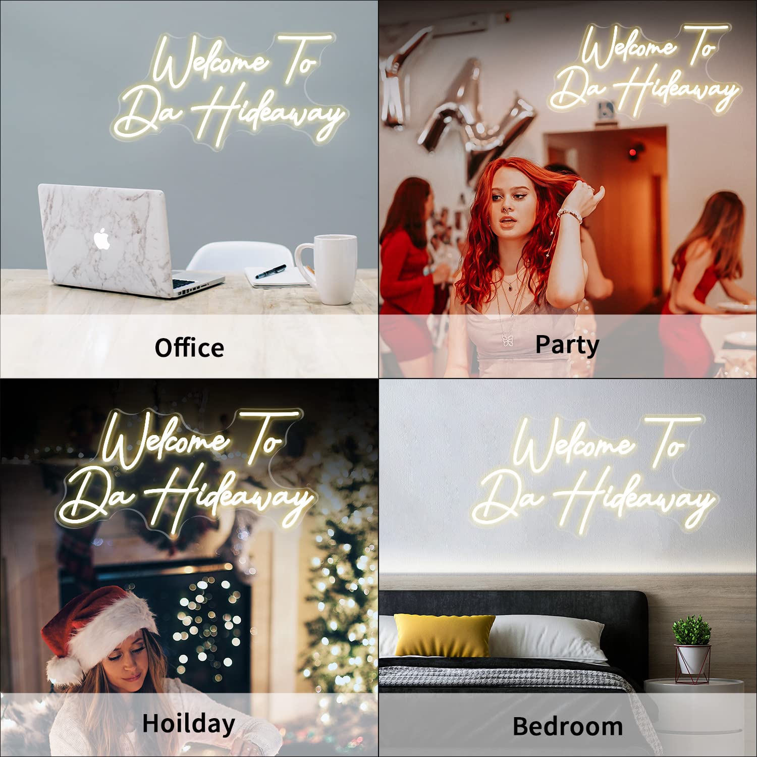 Welcome to DA Hideaway Neon Light Signs, LED Neon Sign for Wall Handmade Wall Decor Neon Light with Dimmer for Office Hotel Bar Cafe Birthday Party Man Cave Art Wall Lights