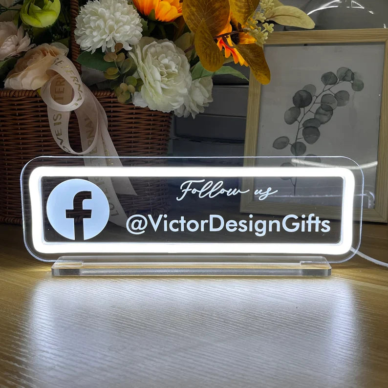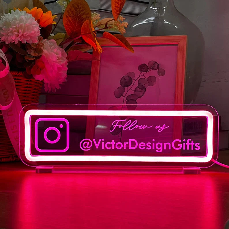- Dual Social Media Design: Showcasing the distinctive logos of Instagram and Facebook in a blend of neon lights and etched details, this sign offers a stylish representation of popular social media platforms.